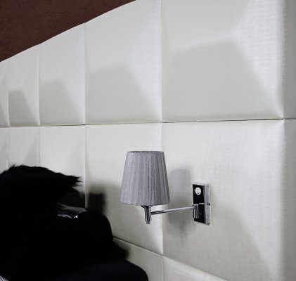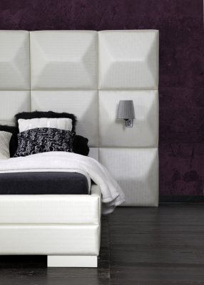 MEDEA to przepiękne nowoczesne łóżko o ciekawym dizajnie. Wezgłowie składa się z kilku trójwymiarowych paneli o niepowtarzalnym kształcie. Są one idealnym tłem dla lampek nocnych.
